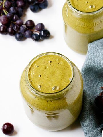 This unique blend of black grapes and spinach smoothie is not just another green blend; it’s a rich, spicy combo of anti-inflammatory foods that nourish your cells, helping them to repair and heal.