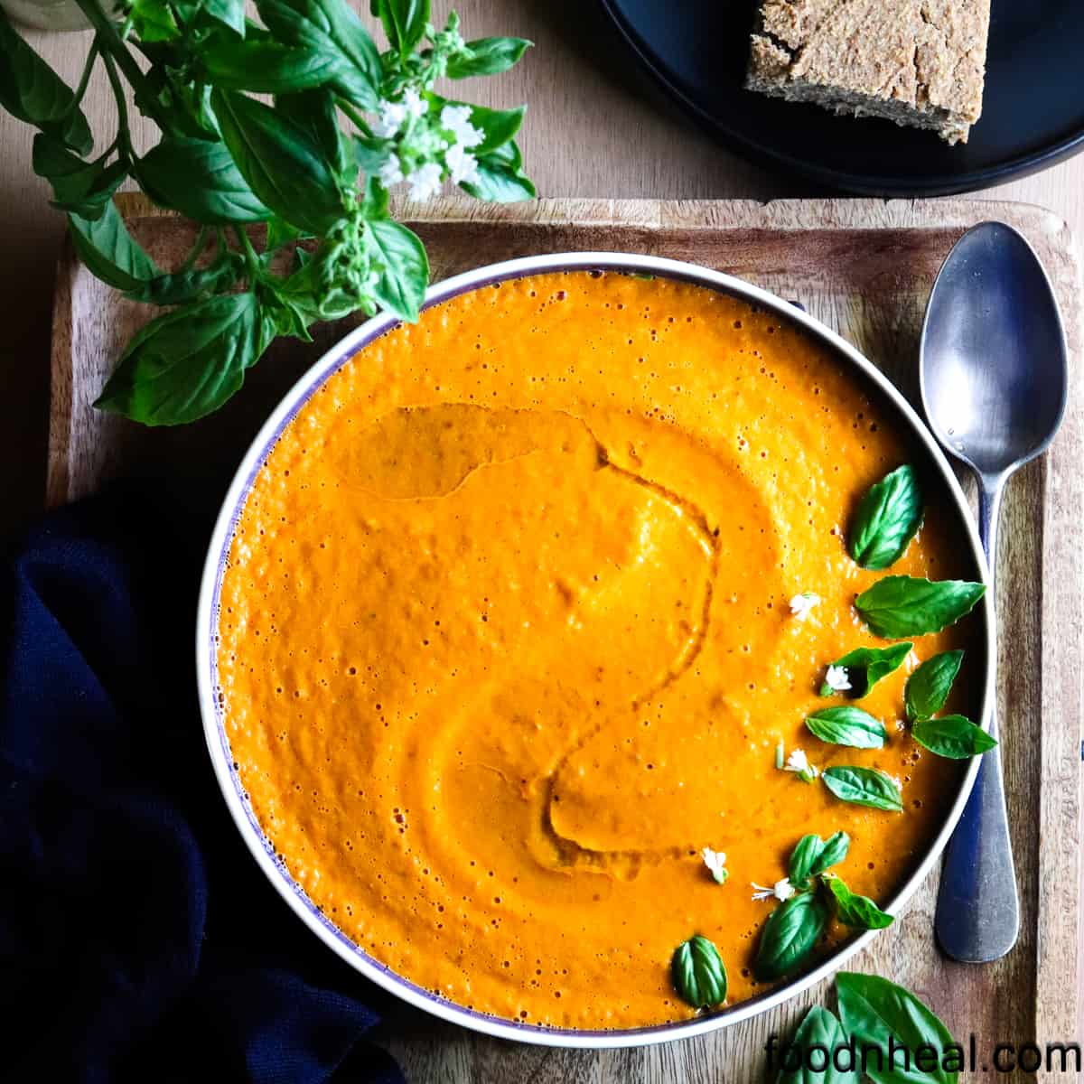 Keyword: homemade tomato soup, tomato soup, tomato soup recipe, yellow squash recipes, yellow squash soup